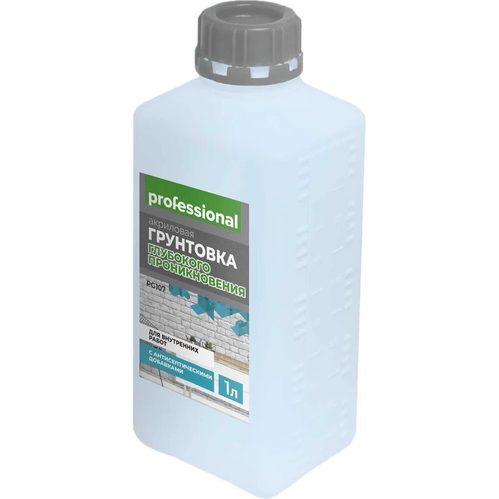 Грунтовка глубокого проникновения для внутренних работ с антисептиком PG107 (1л) ТМ "Professional"