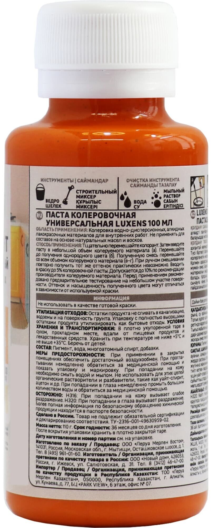 Купить Колеровочная паста Luxens колорант универсальный для интерьерных работ, оранжевый, 0.1 л