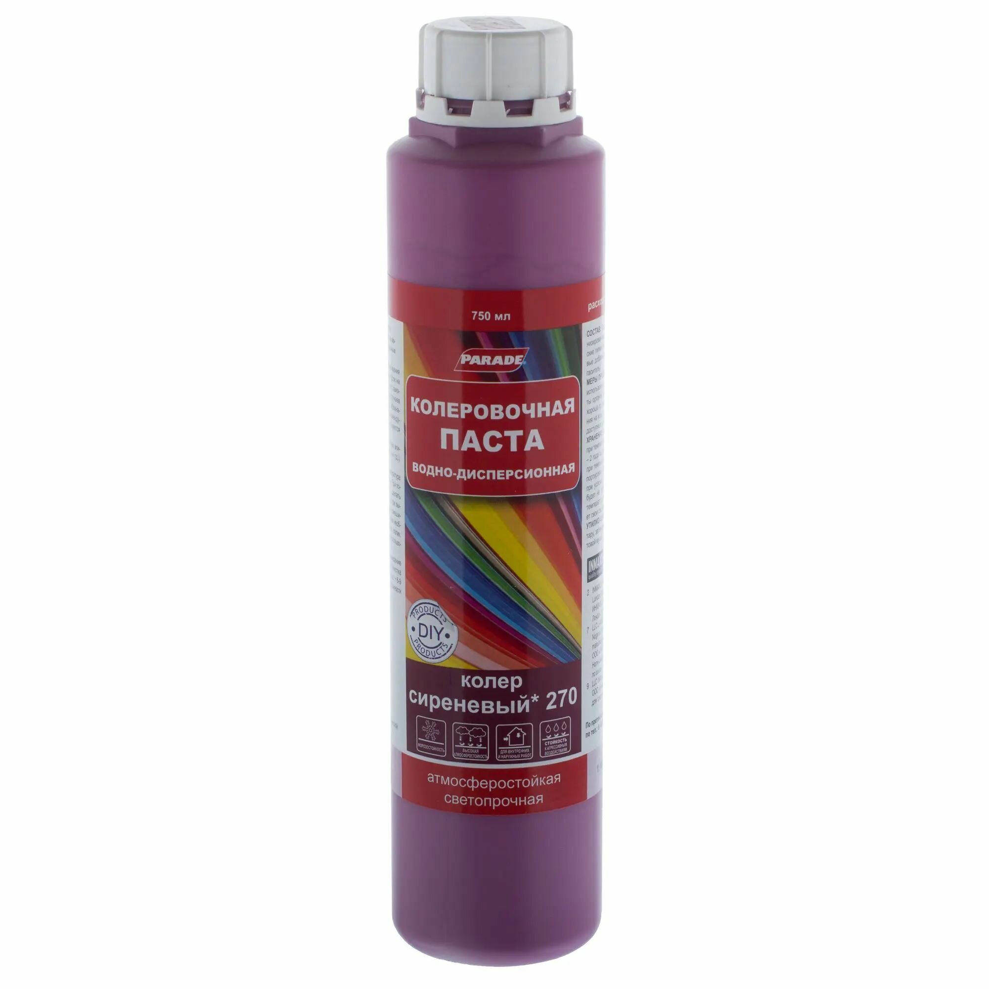 Ниже Вы можете прочитать отзывы на Колеровочная паста Parade CLASSIC, 270 сиреневый, 0.75 л, ознакомится с подробными характеристиками, посмотреть интересные обзоры и фотографии на Колеровочная паста Parade CLASSIC, 270 сиреневый, 0.75 л.