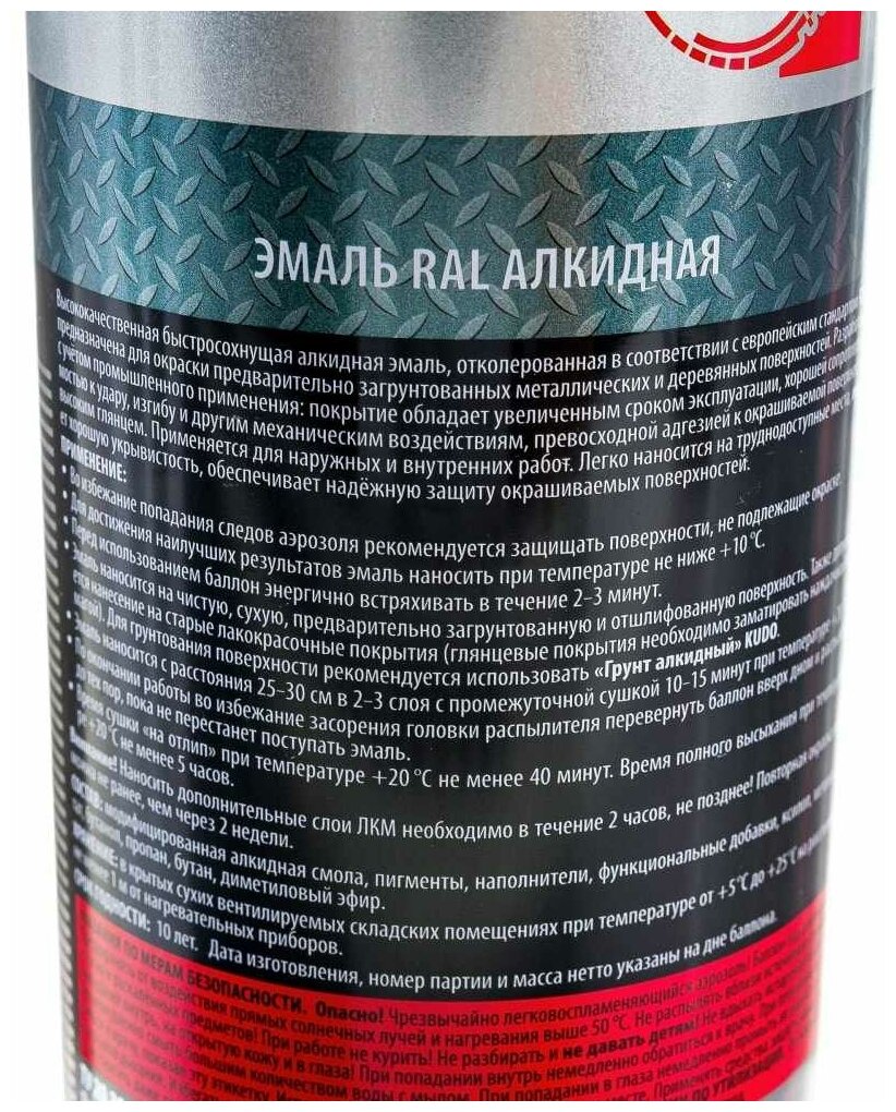 Кудо KU-09005 эмаль аэрозольная RAL9005 реактивный черный (0,52л) / KUDO KU-09005 эмаль аэрозольная алкидная RAL 9005 реактивный черный (0,52л)