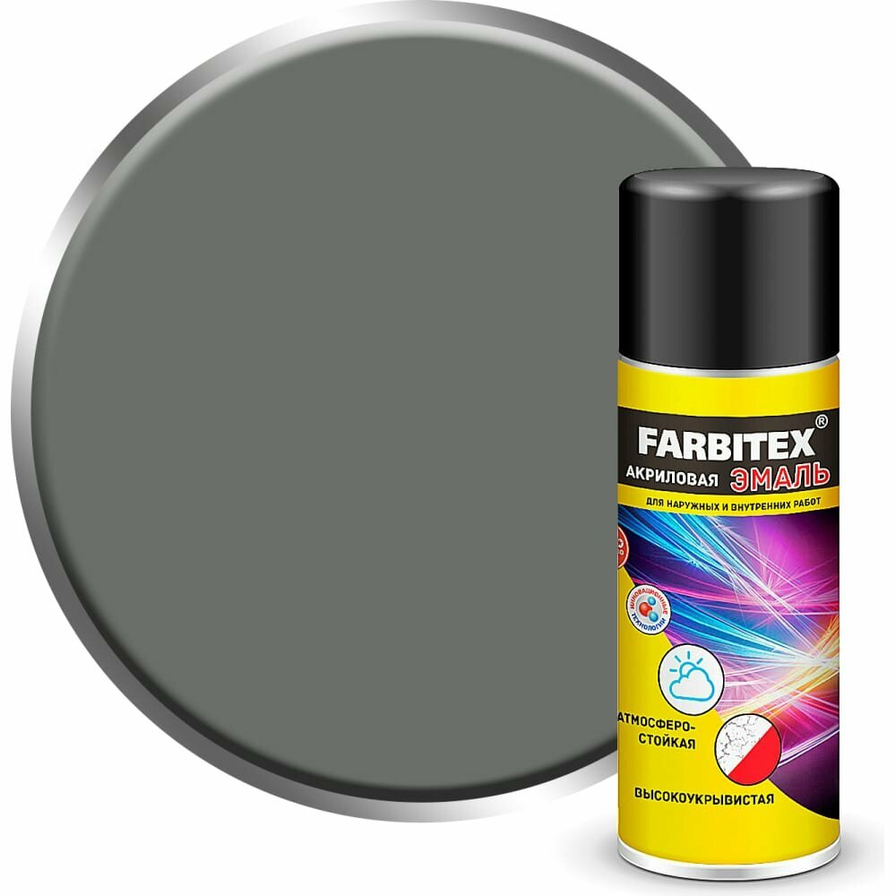 Эмаль акриловая аэрозоль FARBITEX (Артикул: 4100008941; Цвет: Графитовый серый; Фасовка = 0,52 л)