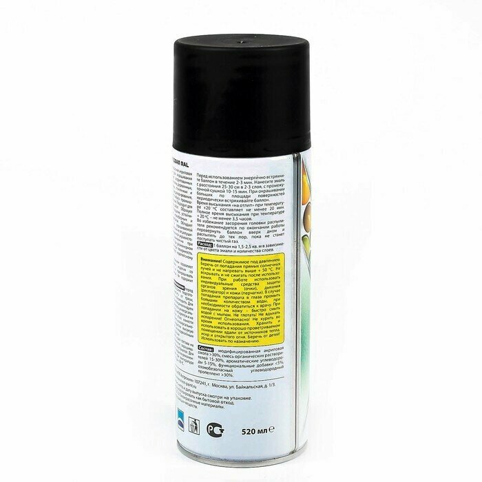 Эмаль акриловая ral, черный янтарь матовый (ral 9005), аэрозоль 520 мл vixen vx30905