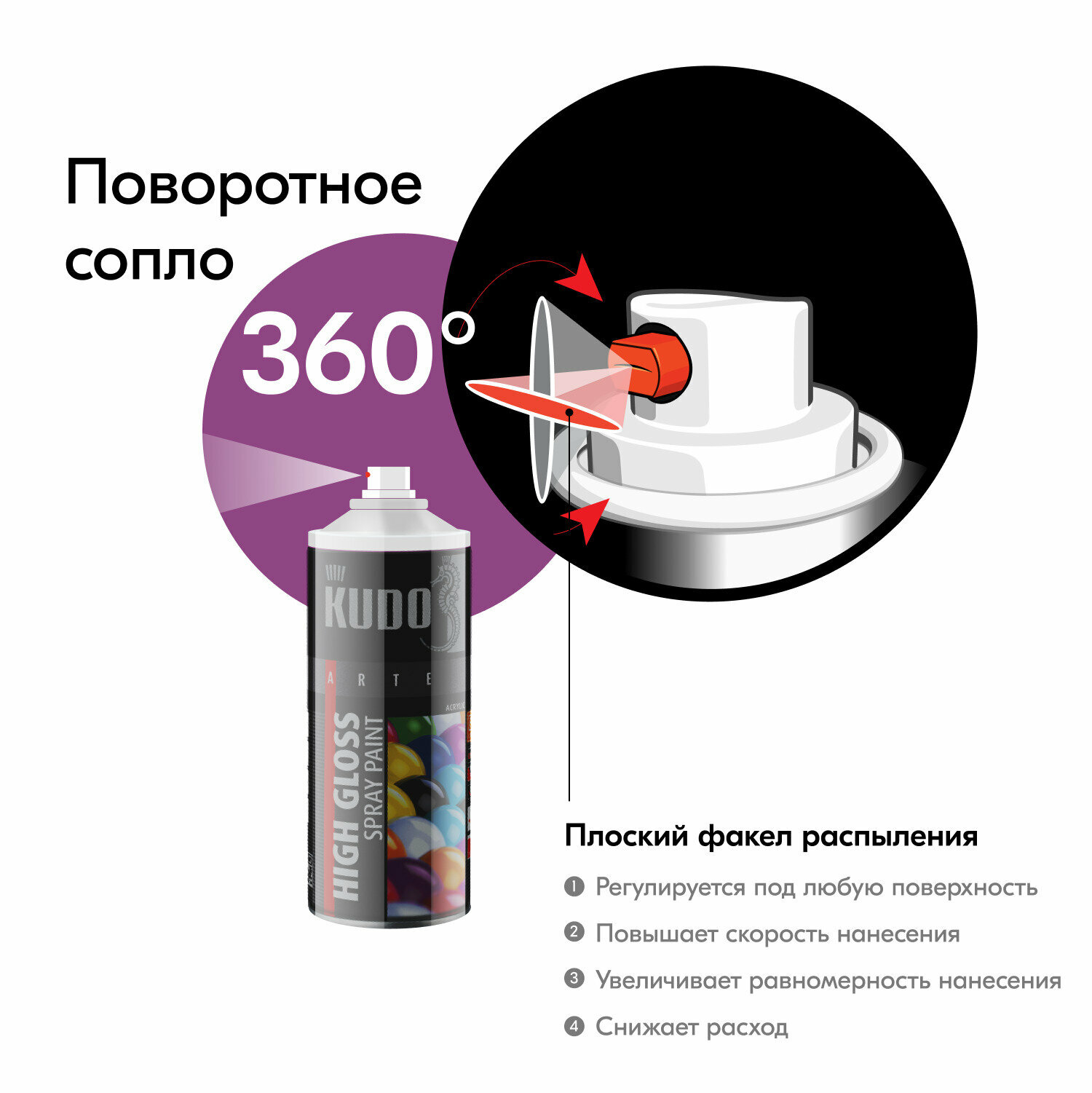 Эмаль аэрозольная Kudo Arte белая глянцевая RAL 9003 520 мл