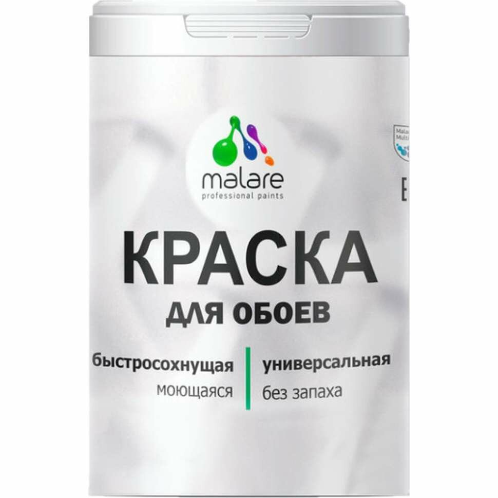 Краска Malare для стен и обоев, потолка, деревянных и минеральных поверхностей, интерьерная акриловая универсальная, быстросохнущая моющаяся без запаха матовая, белый, (1л - 1,3 кг)