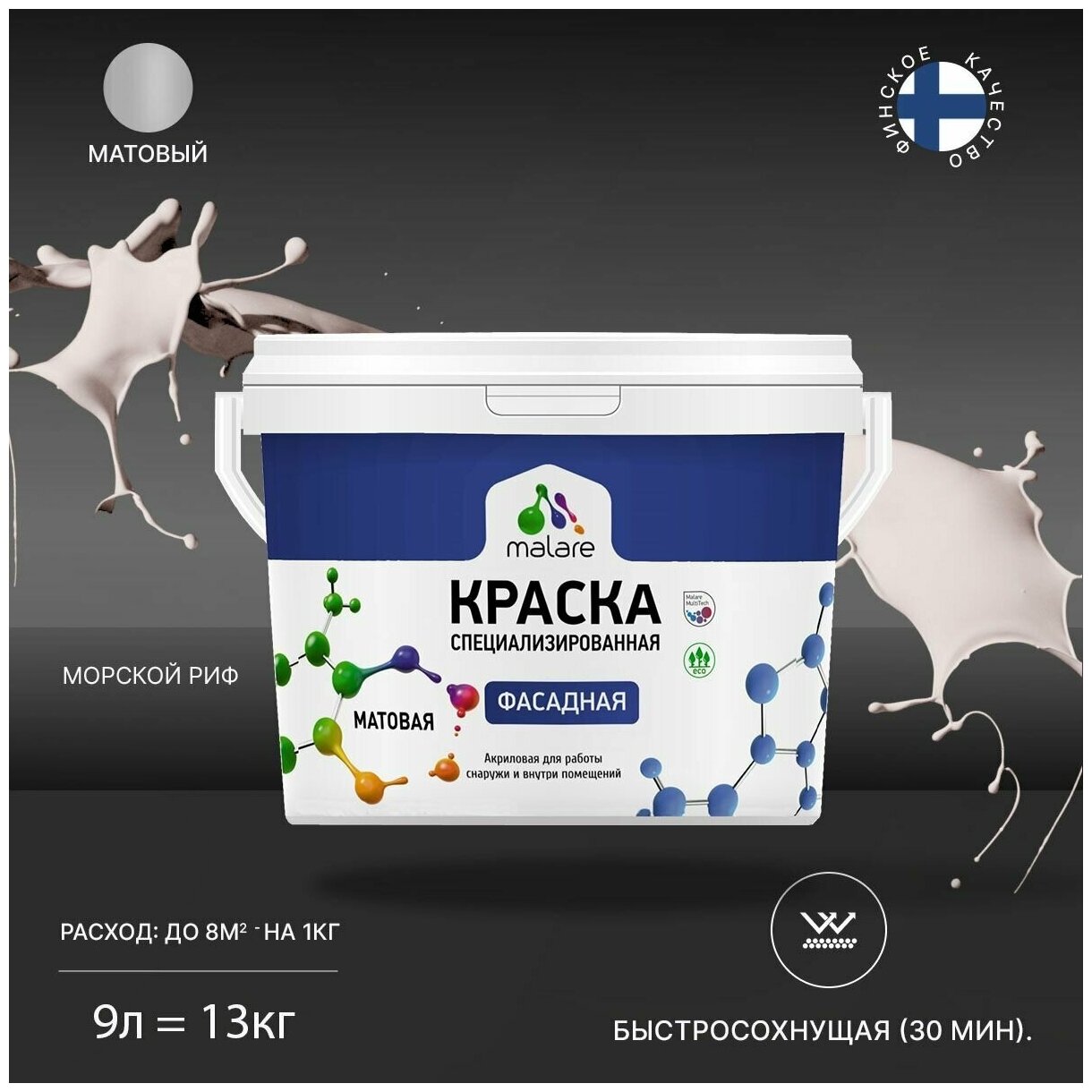 Купить Краска Malare Professional фасадная по дереву, бетону и штукатурке, для камня и кирпича, без запаха, матовая, морской риф, (9л - 13кг)