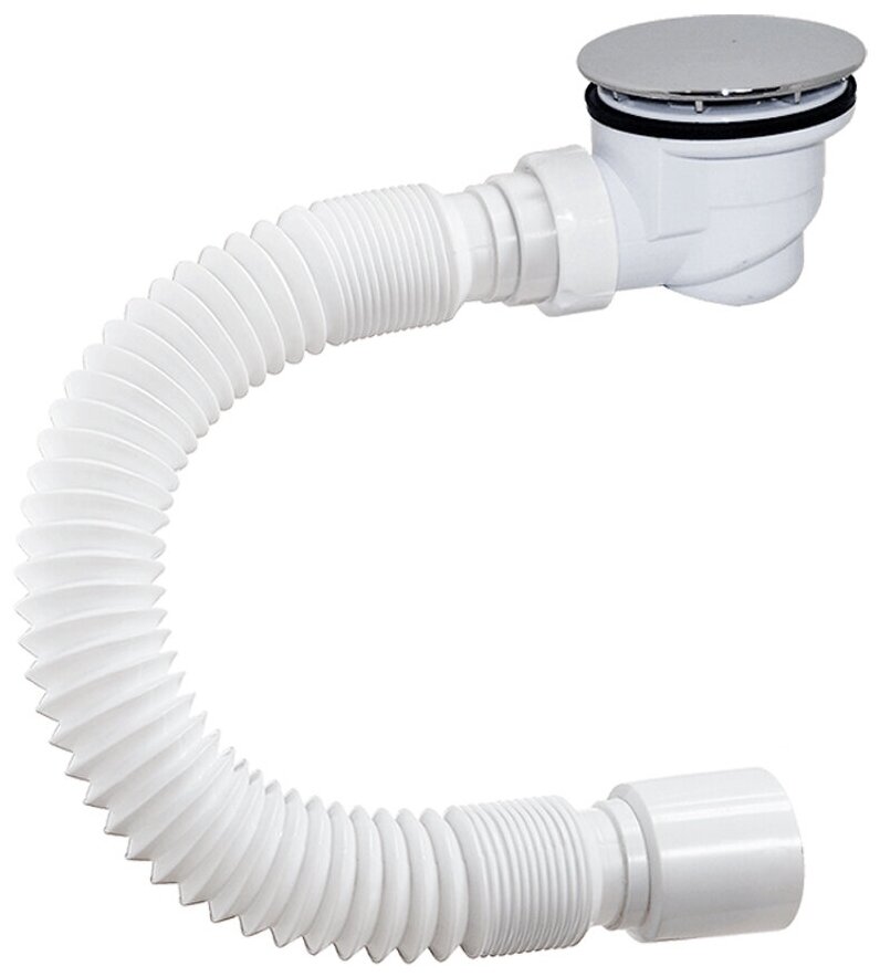 ДХ-602 ORIO Сифон для душевого поддона, 1 1/2x60, высота 62 мм, гибкая труба, пластик (хром) интересное: