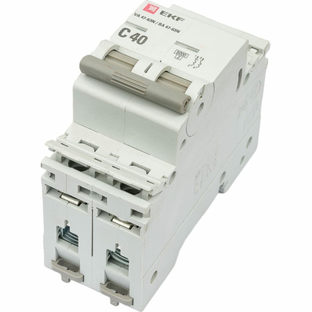 Автомат 40А, тип C, двухполюсный 2P, 6кА, cо встроенной опломбировкой клемм EKF PROxima ВА 47-63N (Автоматический выключатель C40)