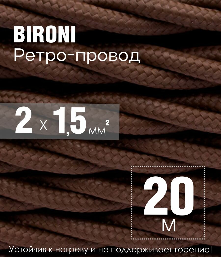 Витой ретро провод BIRONI Бирони 2х1,5 матовый, 15 м/уп., B1-424-72-15, цвет: коричневый
