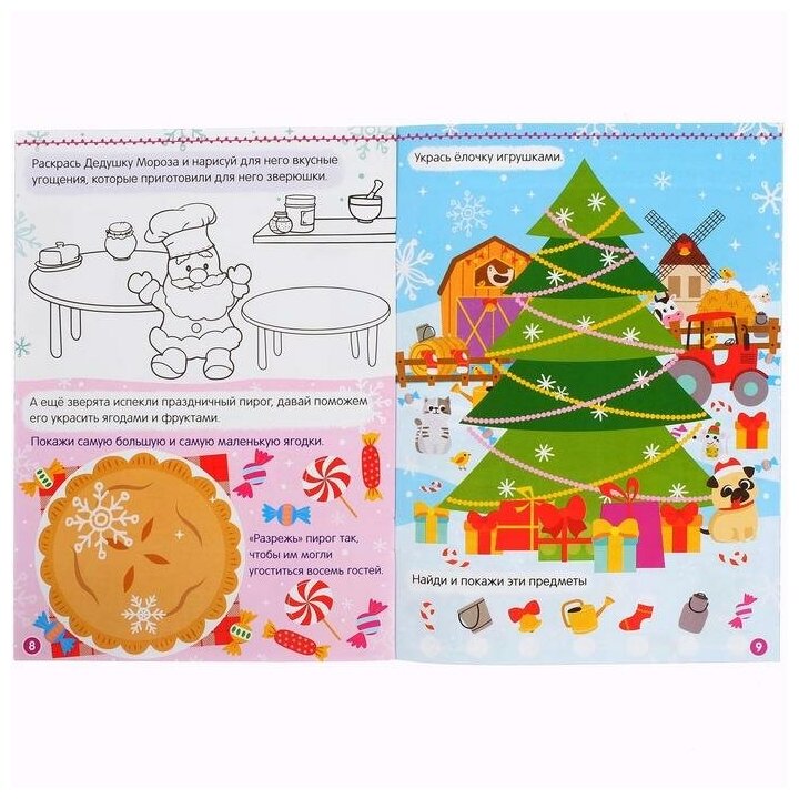 Книжка с наклейками «Новый год на ферме. Зимние игры и задания», 12 стр.