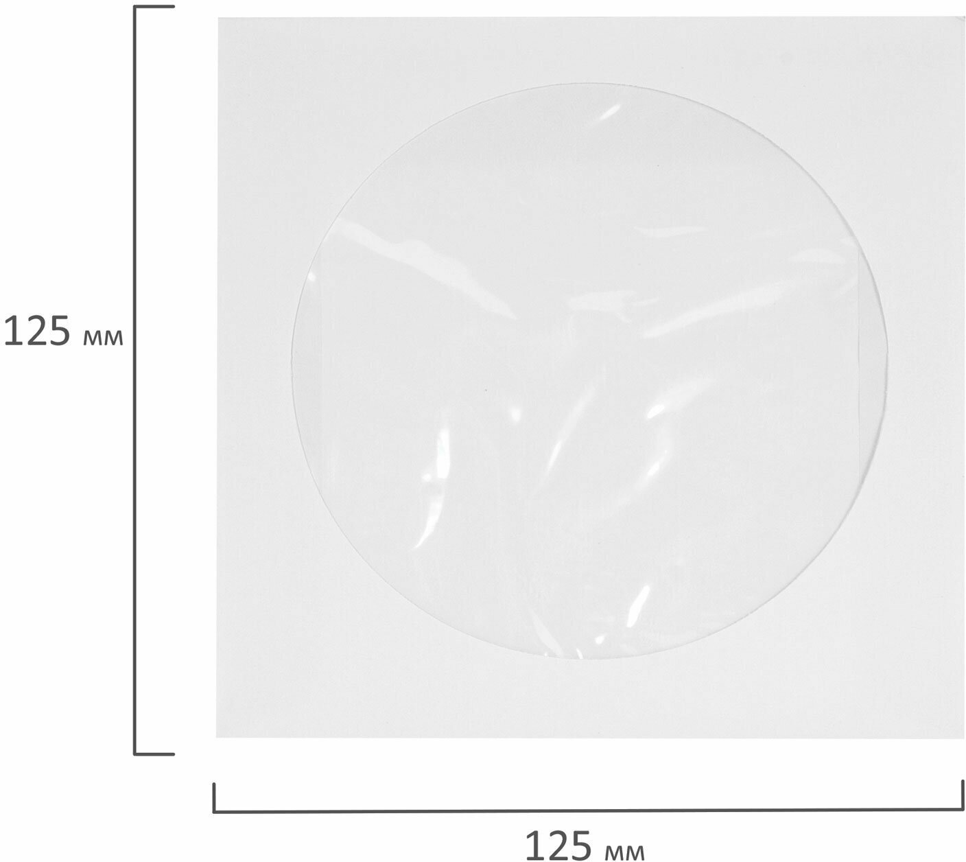 Конверт для CD/DVD бумажный с окном, с вырубным язычком, белый (100 шт.) {37704-00000113}