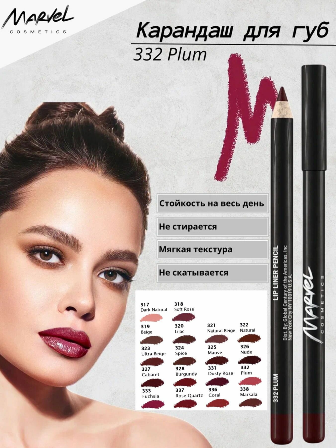 СохранитьМарвел Косметикс / Marvel Cosmetics - Карандаш для губ Lip Liner Pencil тон 332 Plum интересное: