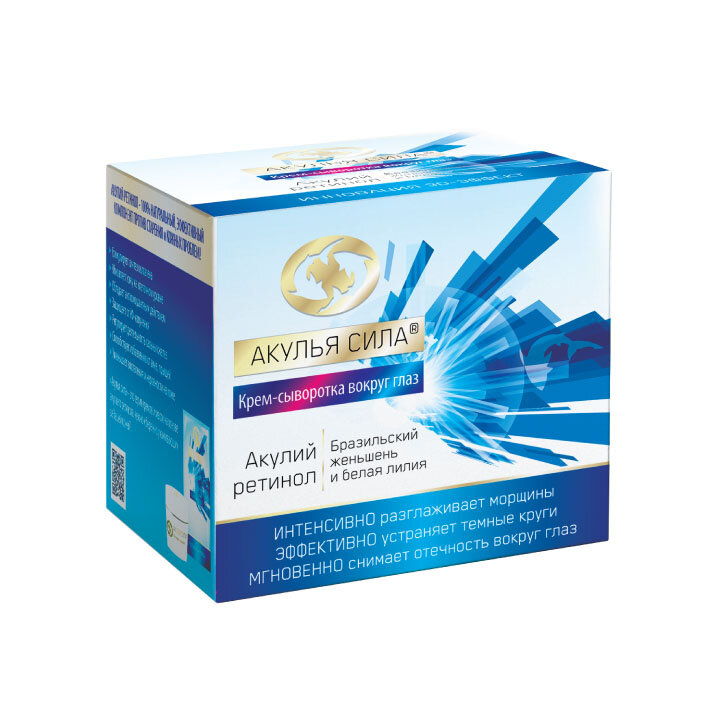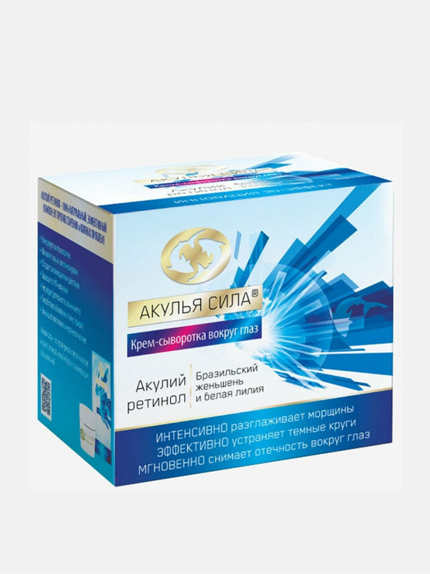 Акулья сила. Акулий ретинол крем-сыворотка вокруг глаз бразильский женьшень и белая лилия. Инновация 3d-эффект 50 мл