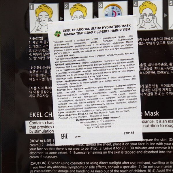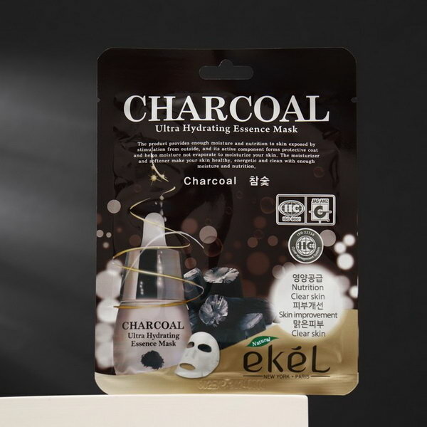 Маска-салфетка для лица с древестным углем, EKEL, 25 мл./В упаковке шт: 2