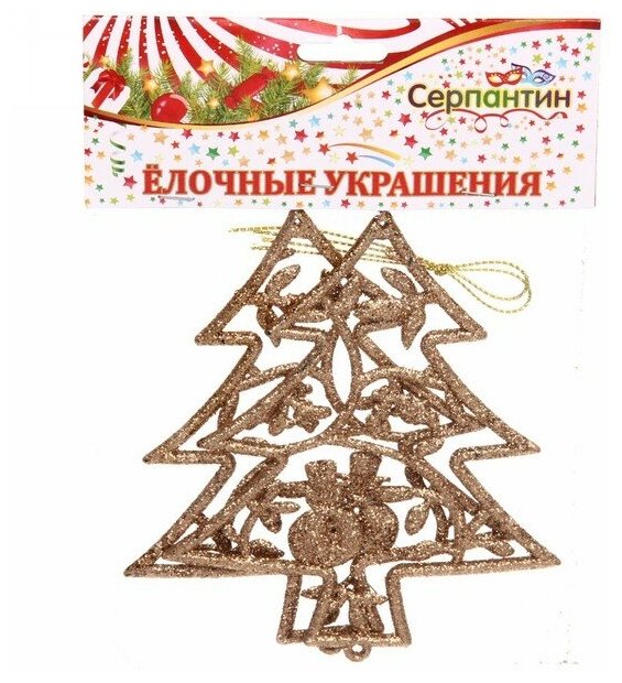 Подвески в блестках «Елочки новогодние» 12 см (набор 2шт), золото интересное: