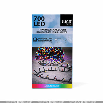 СохранитьЭлектрогирлянда на ель 215 см SNAKE LIGHT, 700 разноцветных LED-огней, контроллер, зеленый PVC провод, 14+3 м, уличная, Edelman, Luca интересное: