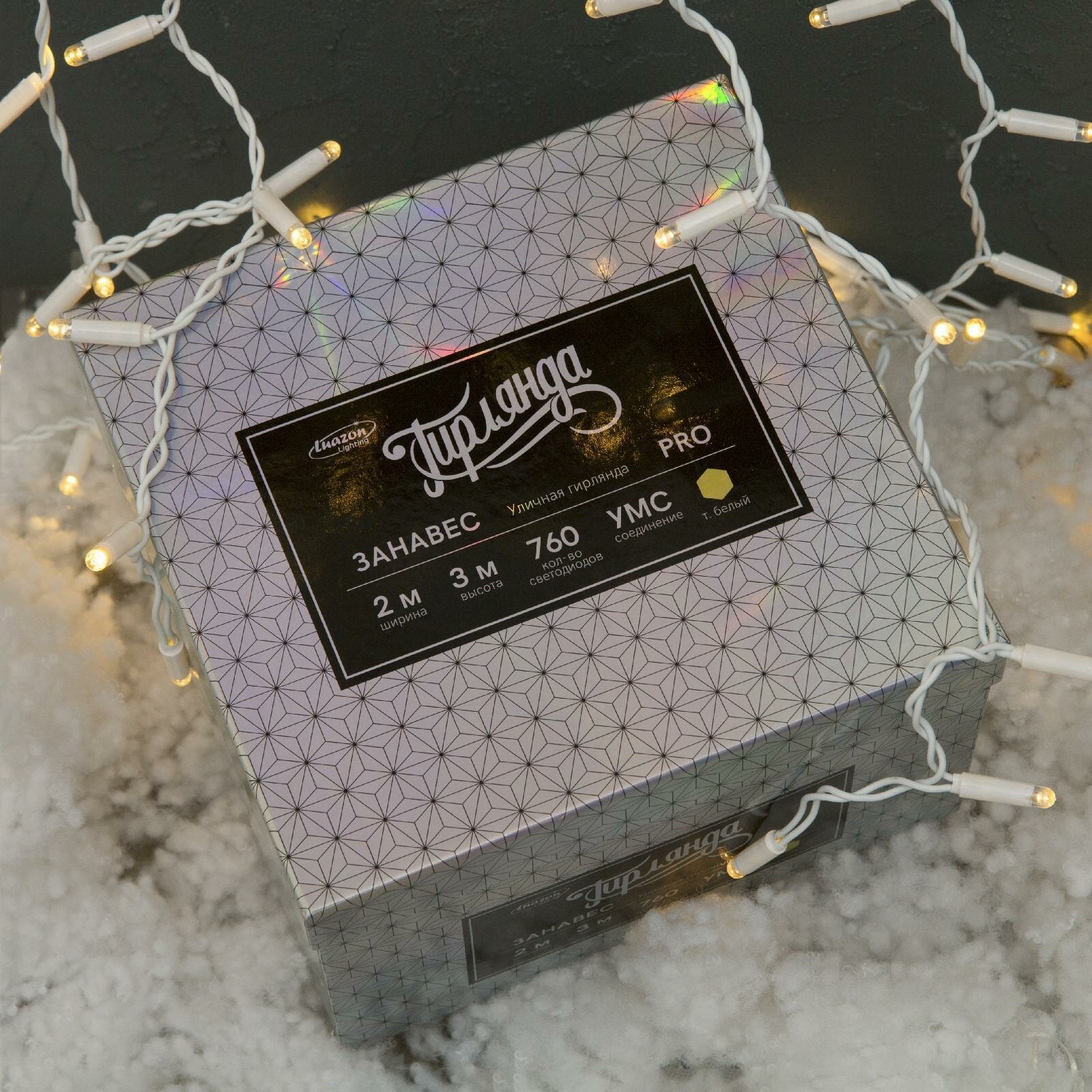 Гирлянда «Занавес» 2 × 3 м, IP65, УМС, белая нить, 760 LED, свечение тёплое белое, 220 В интересное:
