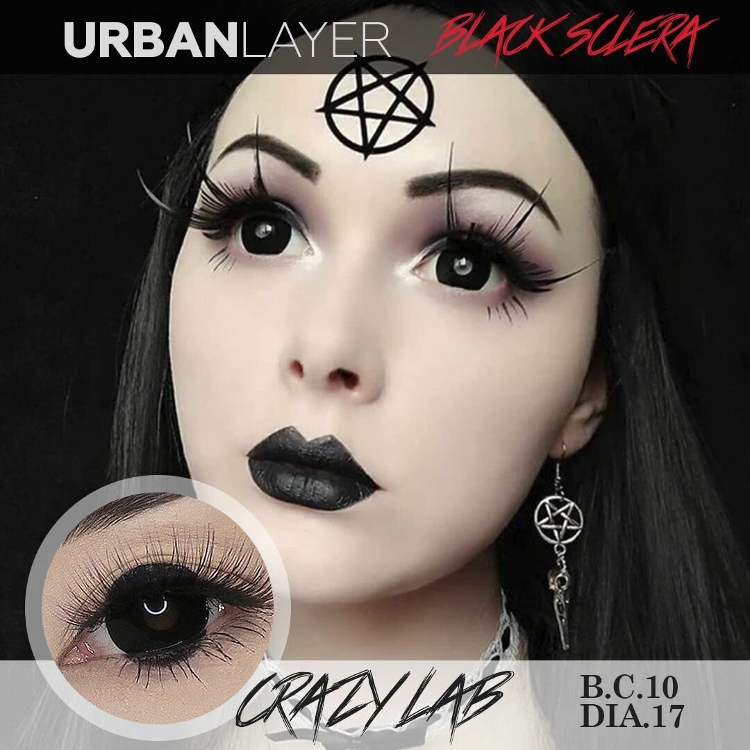 Цветные контактные линзы Urban Layer Crazy Lab Black Sclera 17mm, -5.5 / 10, чёрный, мини-склеры 2 шт.