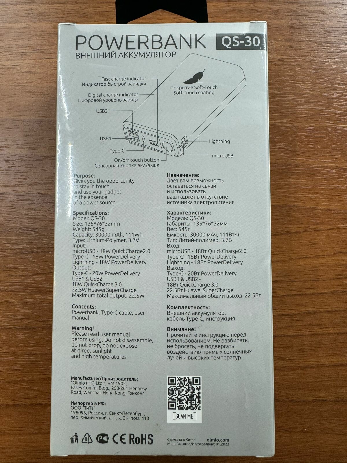 Внешний аккумулятор Olmio QS-30 22.5W 30000 mAh темно-синий интересное: