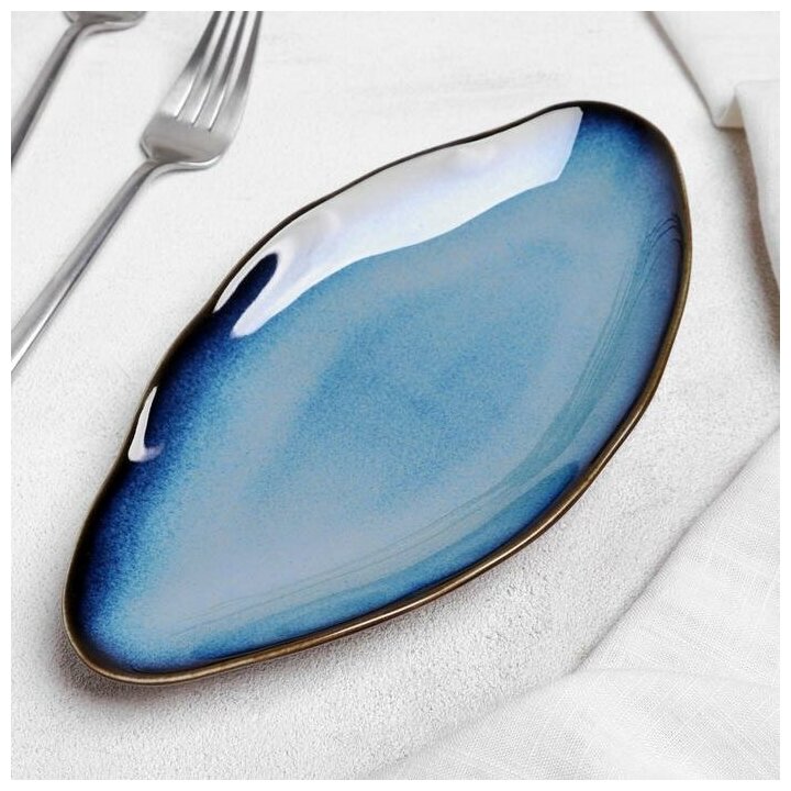 Купить Блюдо керамическое овальное «Галактика», 23×12 см, цвет микс синего оттенка