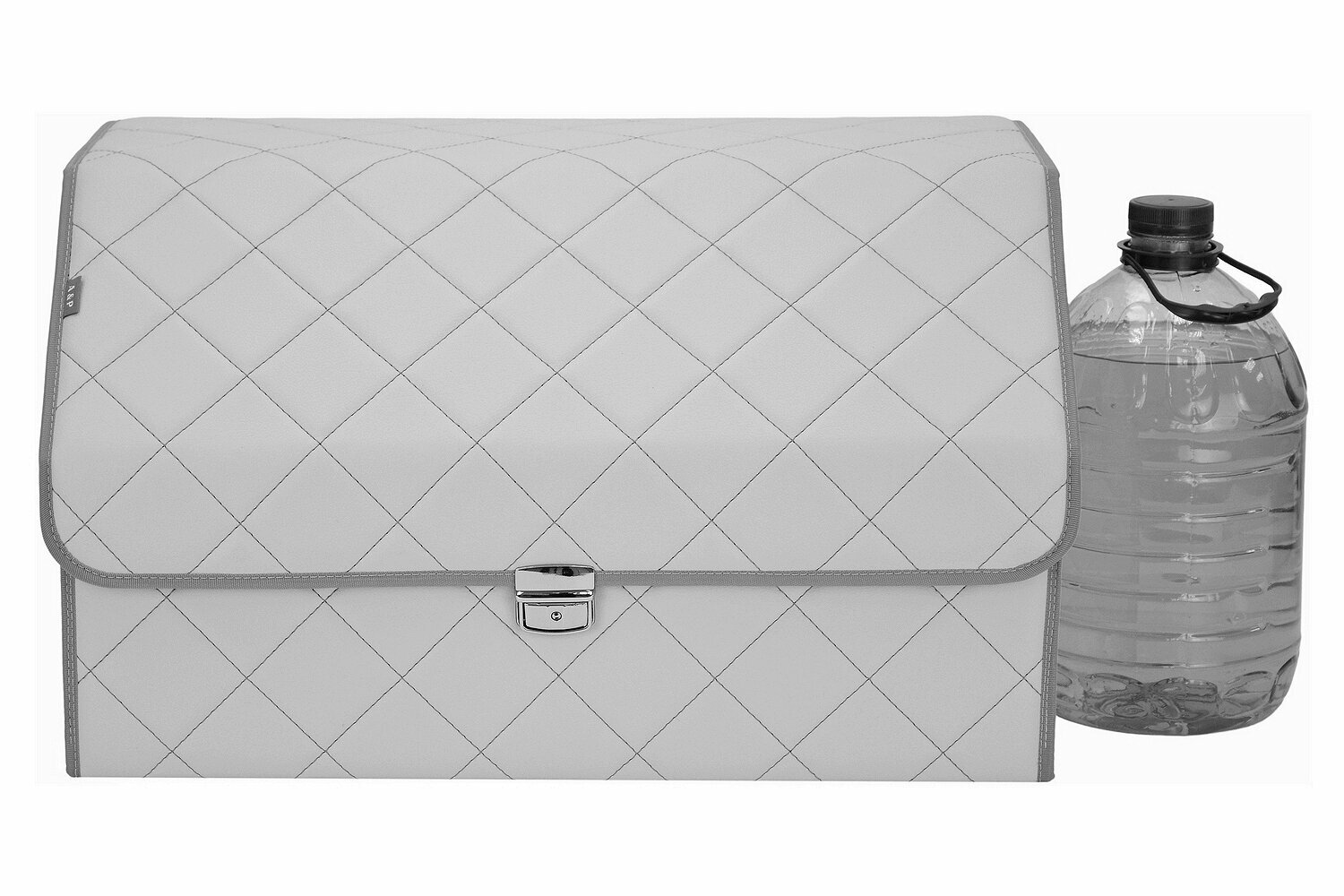 Органайзер в багажник "Союз Премиум" (размер XL). Искожа. Цвет: черный с серой прострочкой ромб
