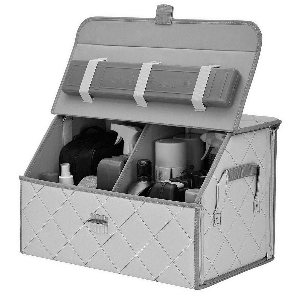 Органайзер в багажник "Союз Премиум" (размер L). Искожа. Цвет: черный с серой прострочкой Ромб
