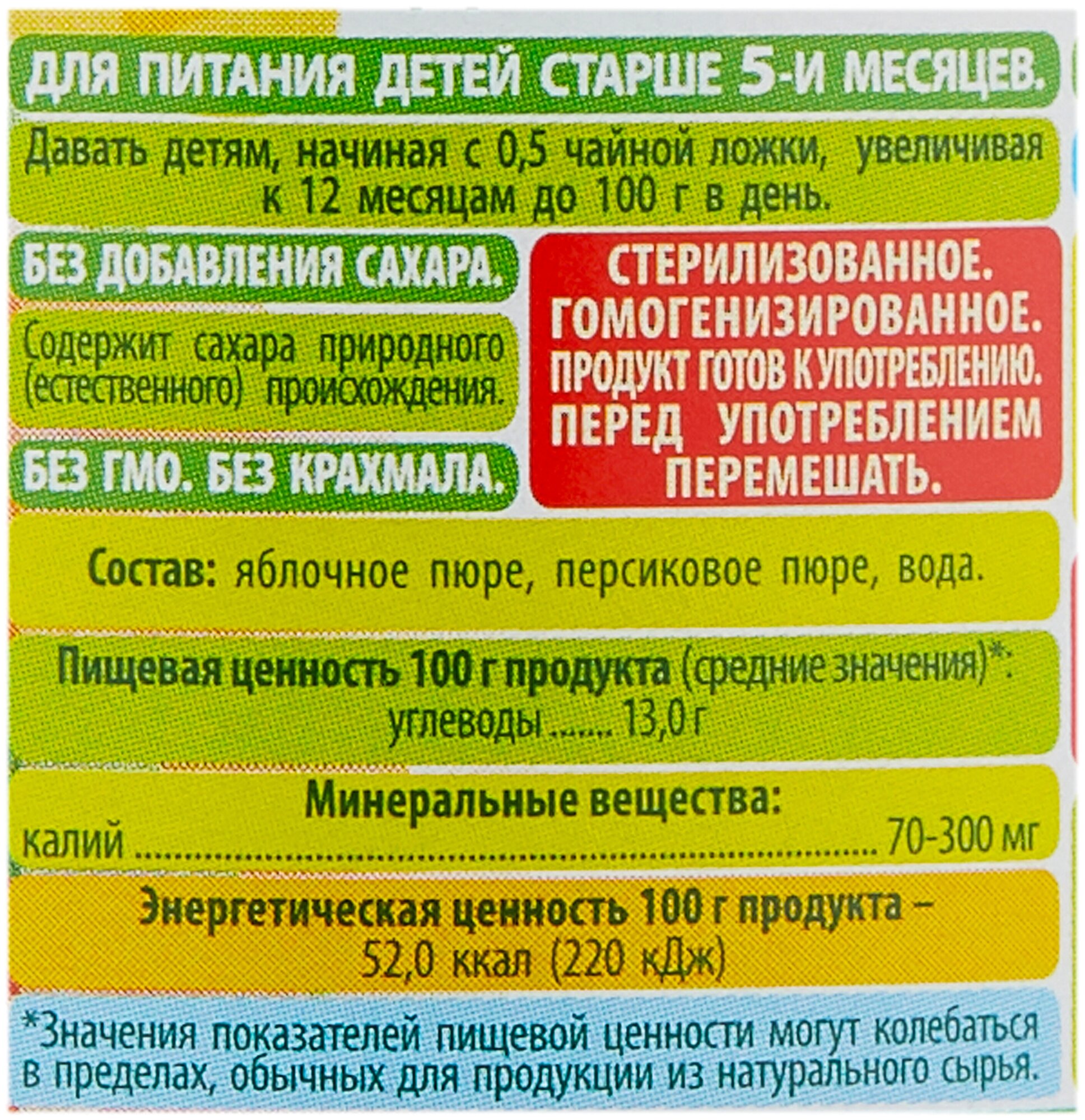 Детское пюре "Сады Придонья" яблоко-персик с/б 120г интересное: