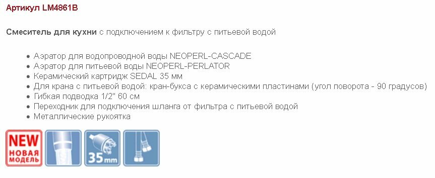 Lemark Смеситель Villa Lm4861b для кухни с подключением к фильтру с питьевой водой Lm4861b .