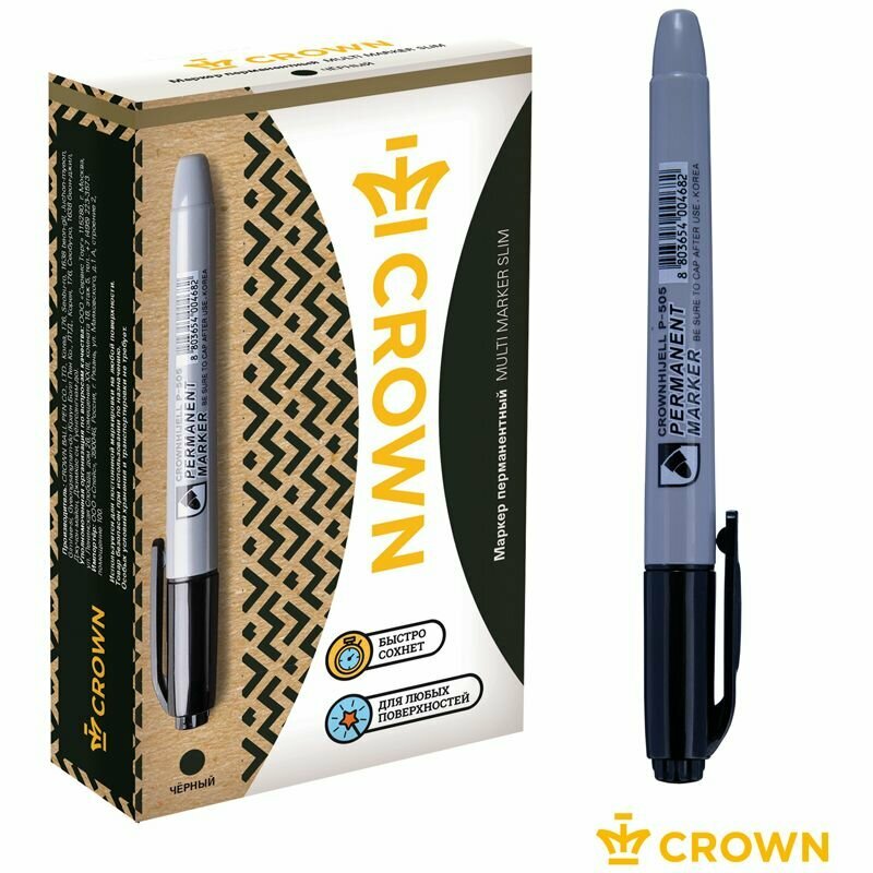 Маркер перманентный "Multi Marker Slim" 2мм пулевидный черн. Crown Б0048243 интересное: