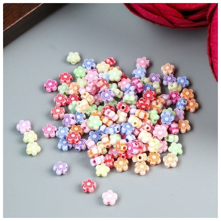 Бусины для творчествах пластик "Цветочки" набор 150 шт 0,6х0,6 см