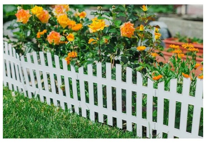 Купить Ограждение декоративное, 35 × 210 см, 5 секций, пластик, белое, RENESSANS, Greengo (1 шт.)