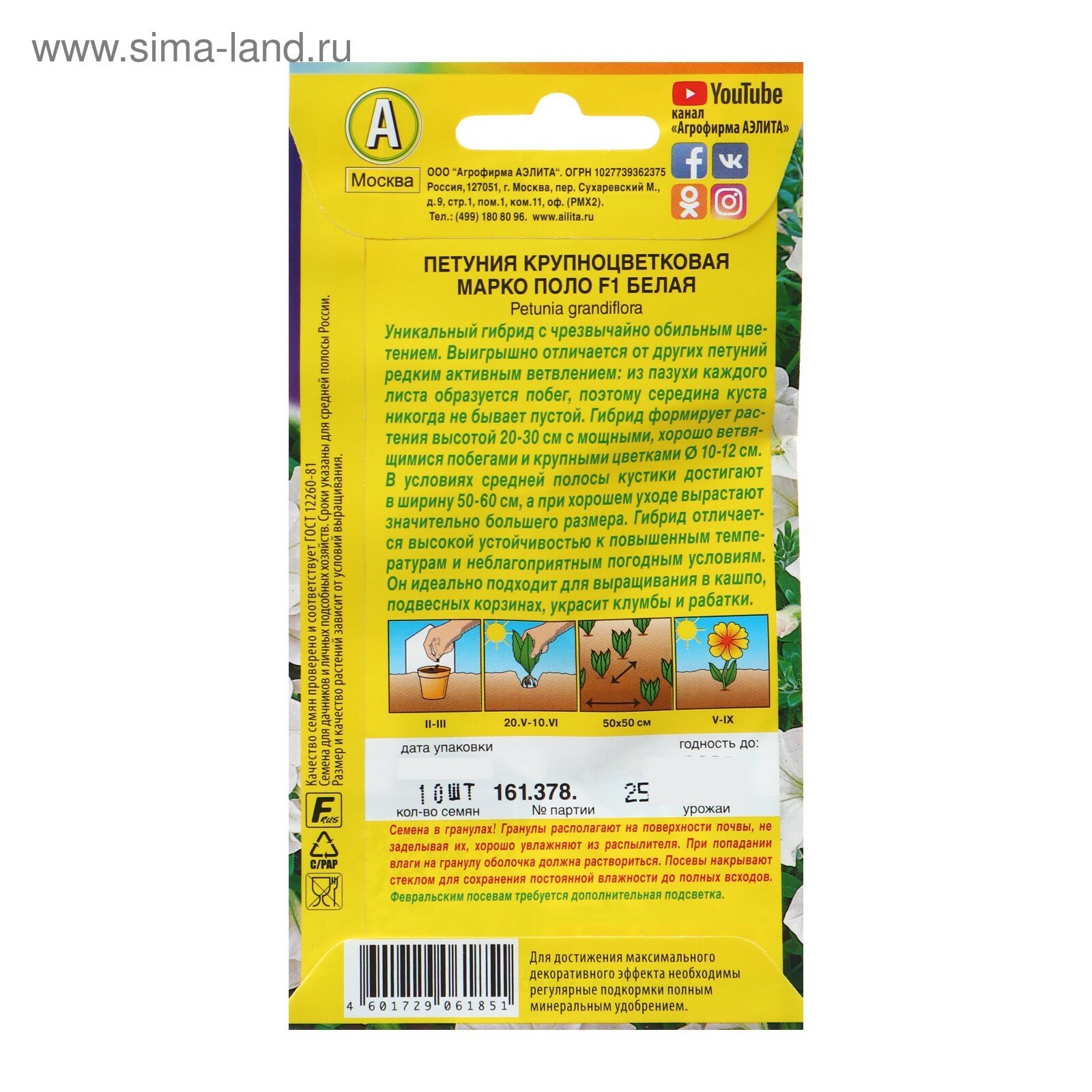 Семена Петуния "Марко Поло" F1 белая, 10 шт интересное:
