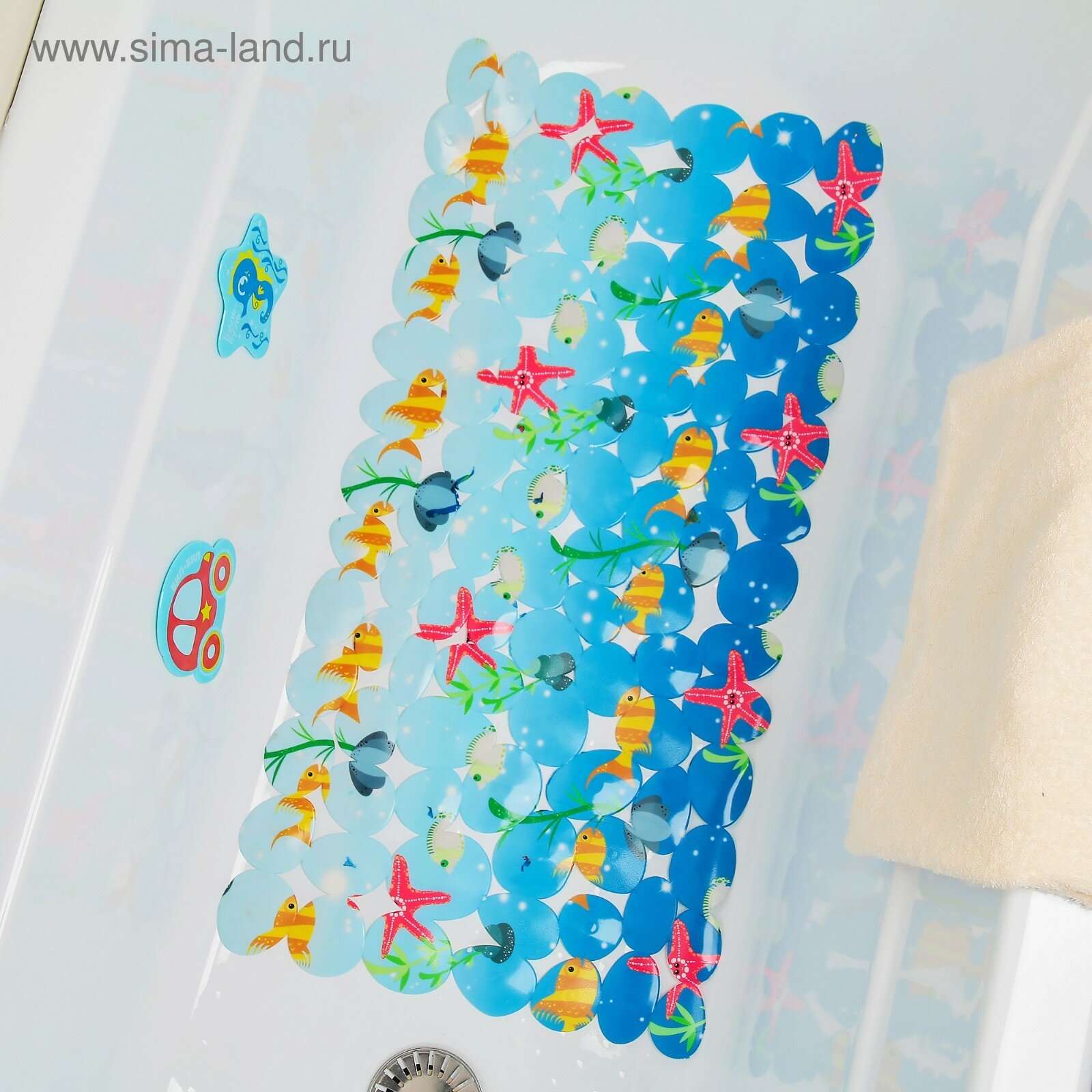 Коврик противоскользящий в ванну на присосках Доляна «Лагуна», 35×69 см