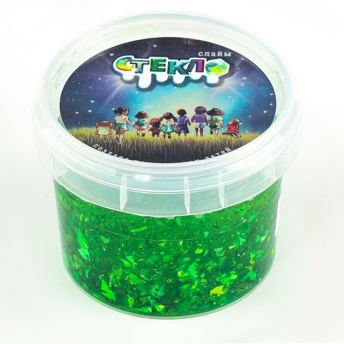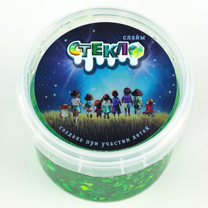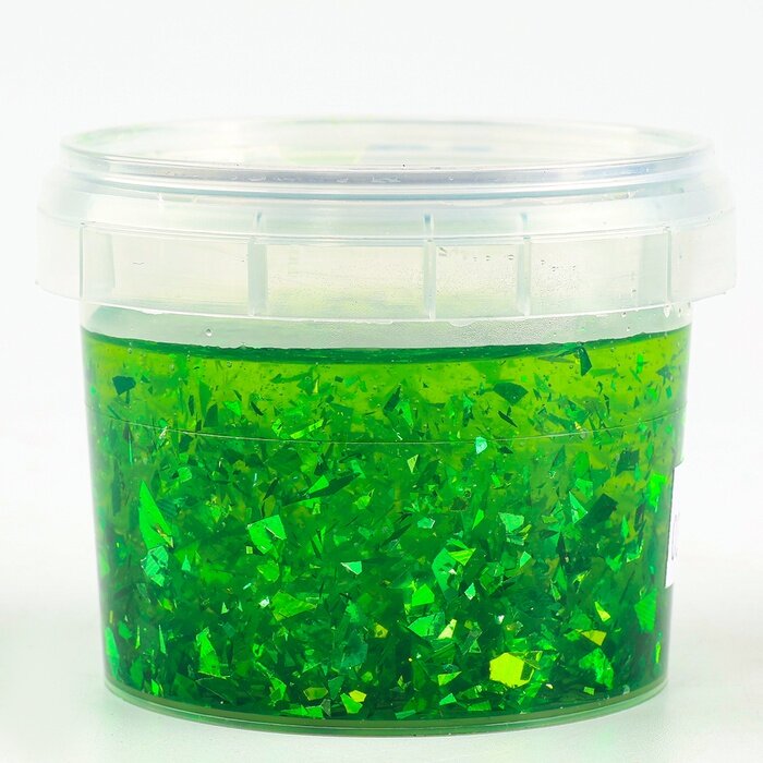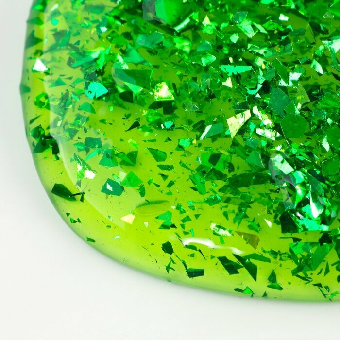 Купить Слайм "Стекло" с зелёными блёстками слюда, 1 шт.