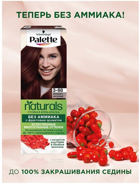 Стойкая крем-краска Палетт Naturia 3-68 Шоколадно-каштановый, 110мл