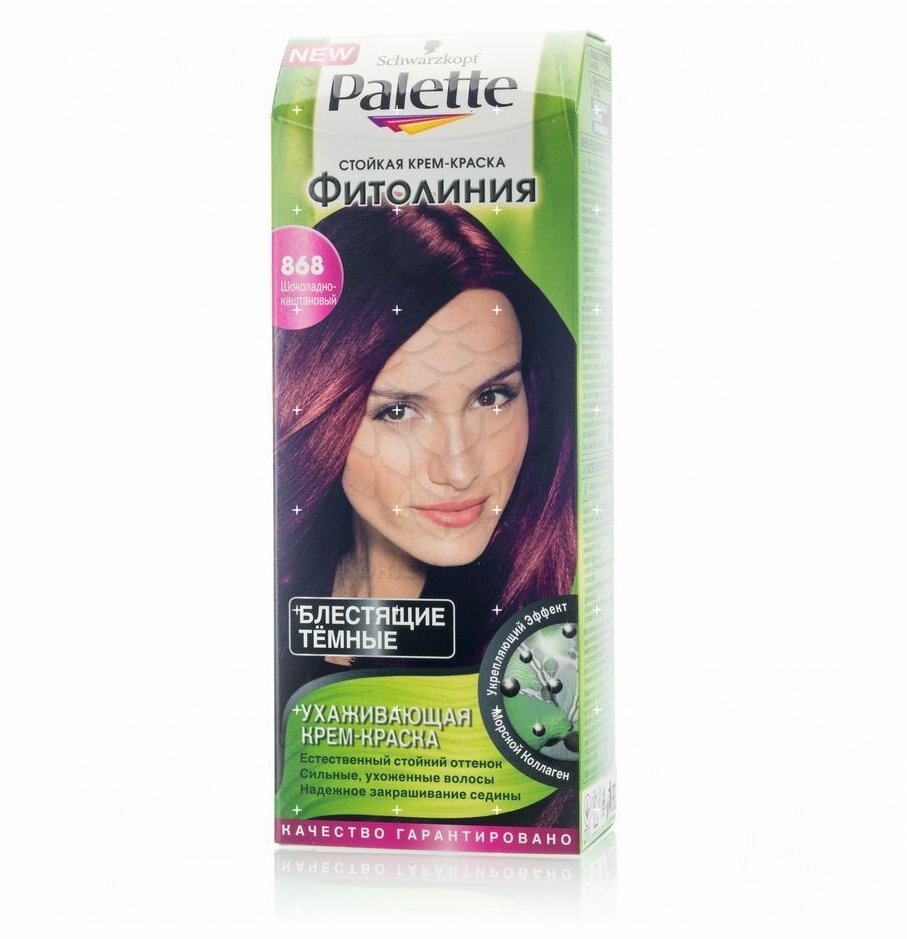 СохранитьPalette Фитолиния Стойкая крем-краска для волос, 868 (3-68) Шоколадно-каштановый интересное: