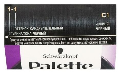 Palette Стойкая крем-краска C1 (1-1) Иссиня-черный, 110 мл