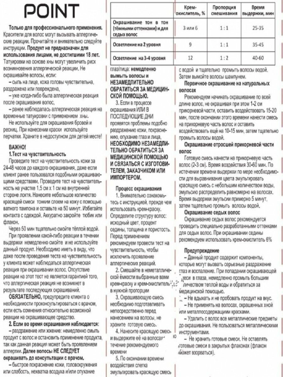 Ниже Вы можете прочитать отзывы на POINT. Краска для волос, тон №3.7, Тёмный шатен коричневый 100мл, ознакомится с подробными характеристиками, посмотреть интересные обзоры и фотографии на POINT. Краска для волос, тон №3.7, Тёмный шатен коричневый 100мл.