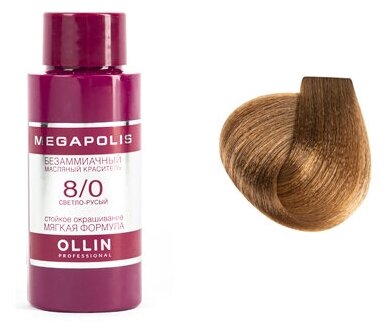 Купить Краска для волос Ollin Professional MEGAPOLIS New безаммиачный масляный краситель 50мл, Цвет 8-0 Светло-русый