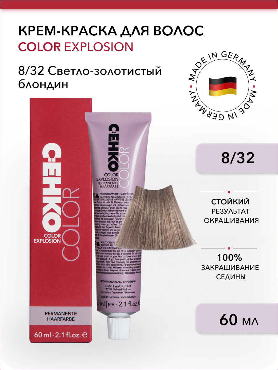 C:EHKO COLOR EXPLOSION Крем-краска для волос 8/32 Светло-золотистый пепельный блондин/Hellblond gold asch, 60 мл