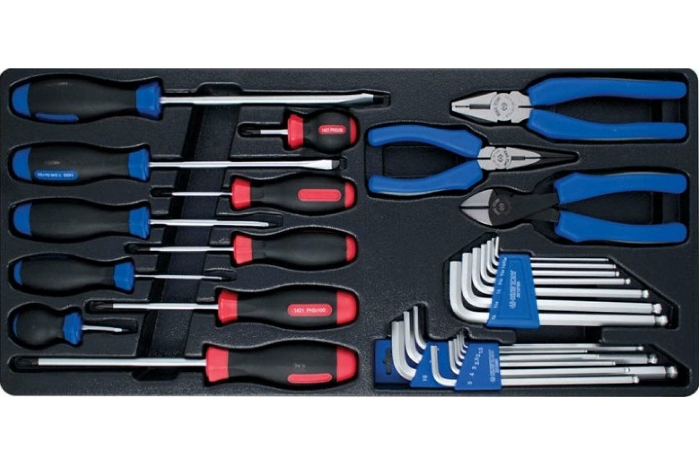 Набор отверток, плоскогубцев и Г-образных шестигранников (ложемент, 29 предметов) KING TONY 9-90129CR