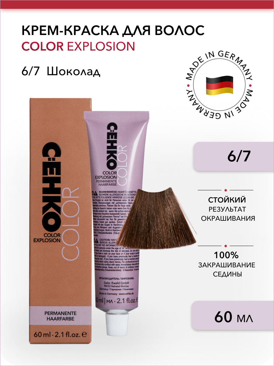 Профессиональная краска для волос 6/77 Капучино, коричневая, стойкая, перманентная, для седых волос, 60 мл, C:EHKO COLOR EXPLOSION