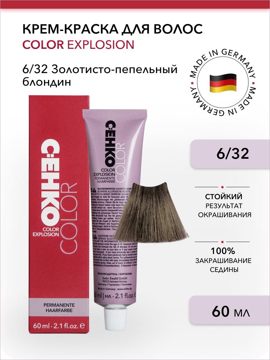 C:EHKO COLOR EXPLOSION Крем-краска для волос 8/32 Светло-золотистый пепельный блондин/Hellblond gold asch, 60 мл