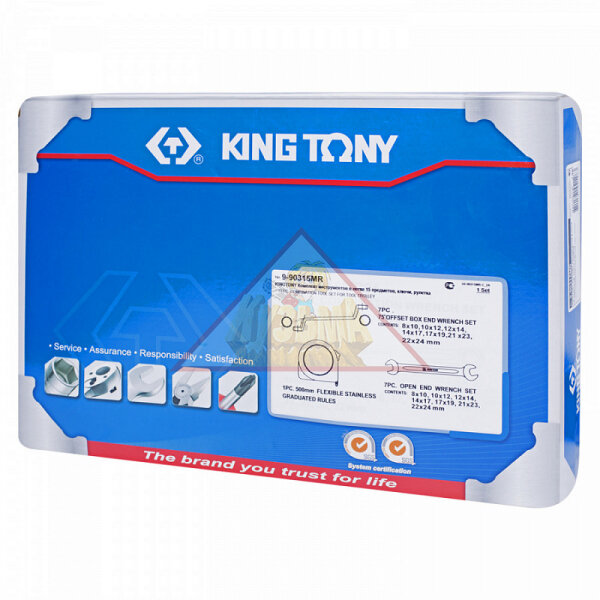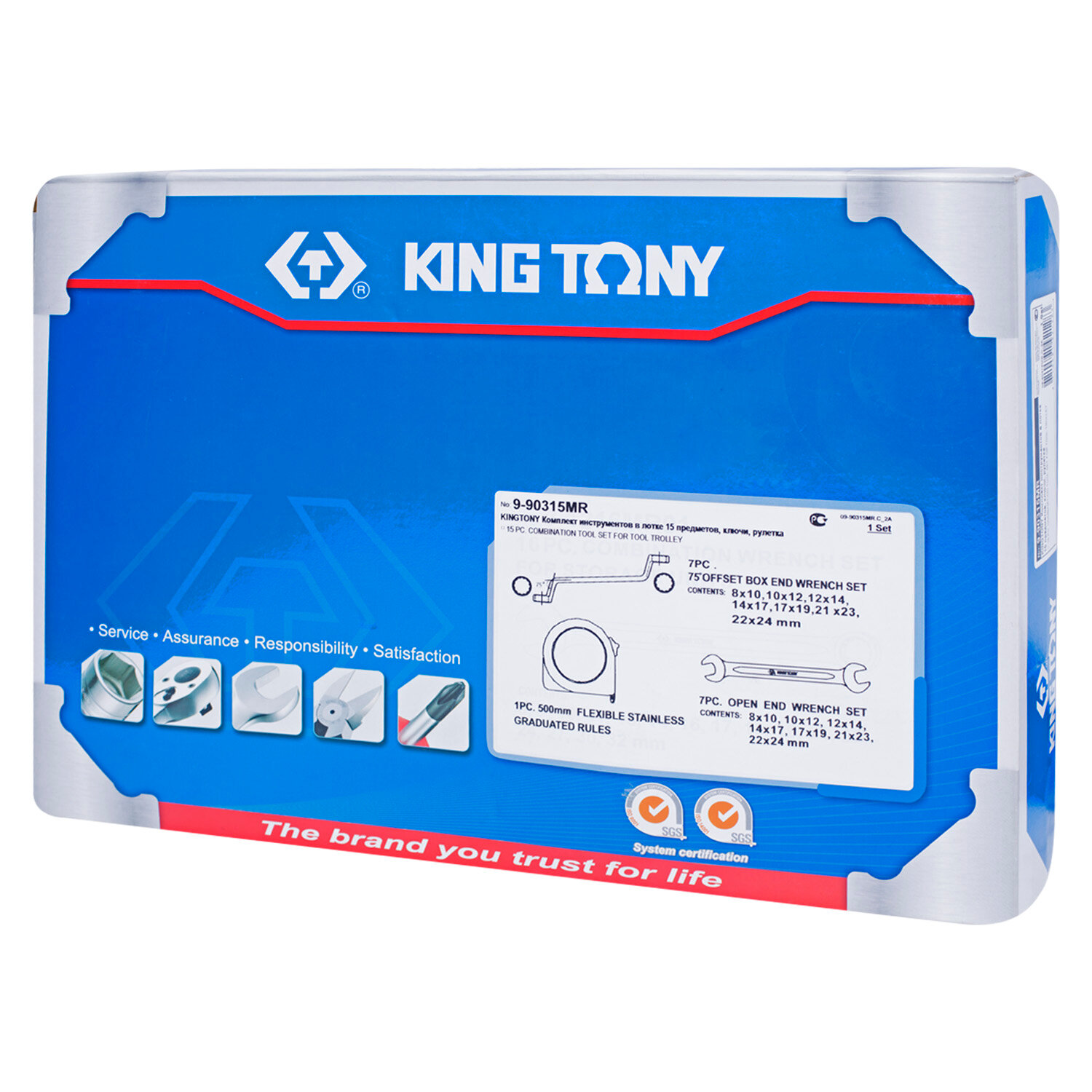 9-90315MR Набор накидных и рожковых ключей, рулетка, ложемент, 15 предметов KING TONY 9-90315MR