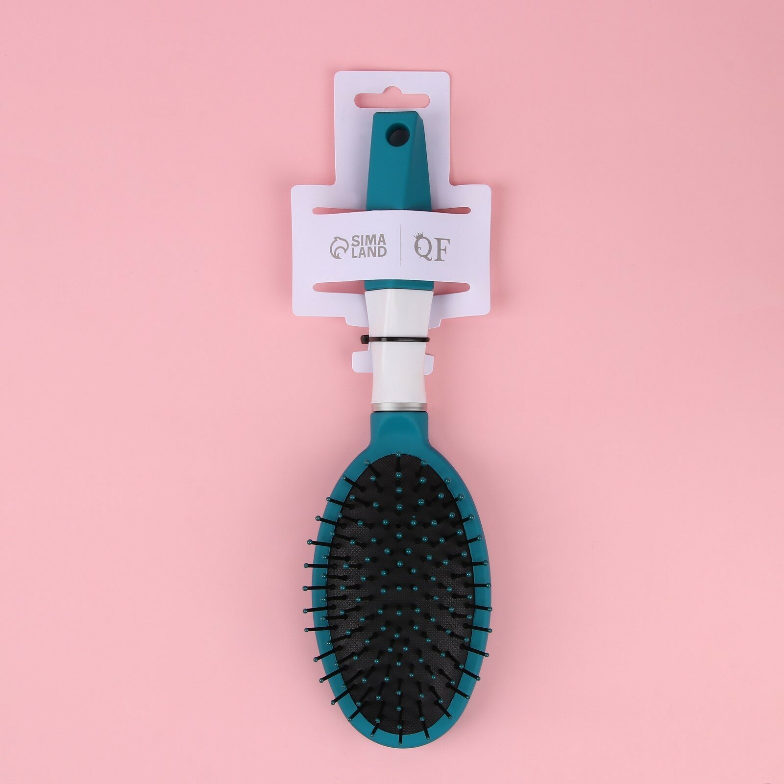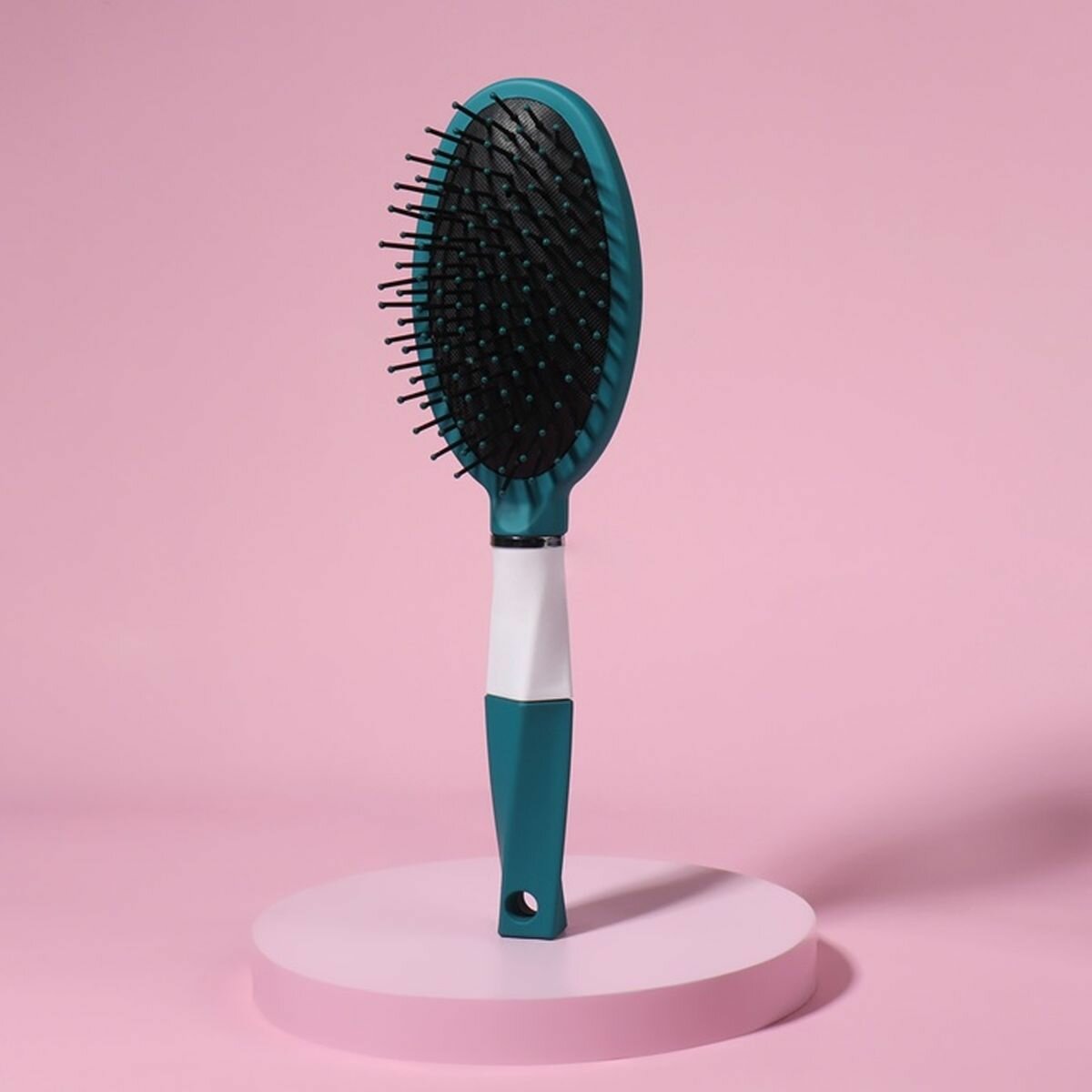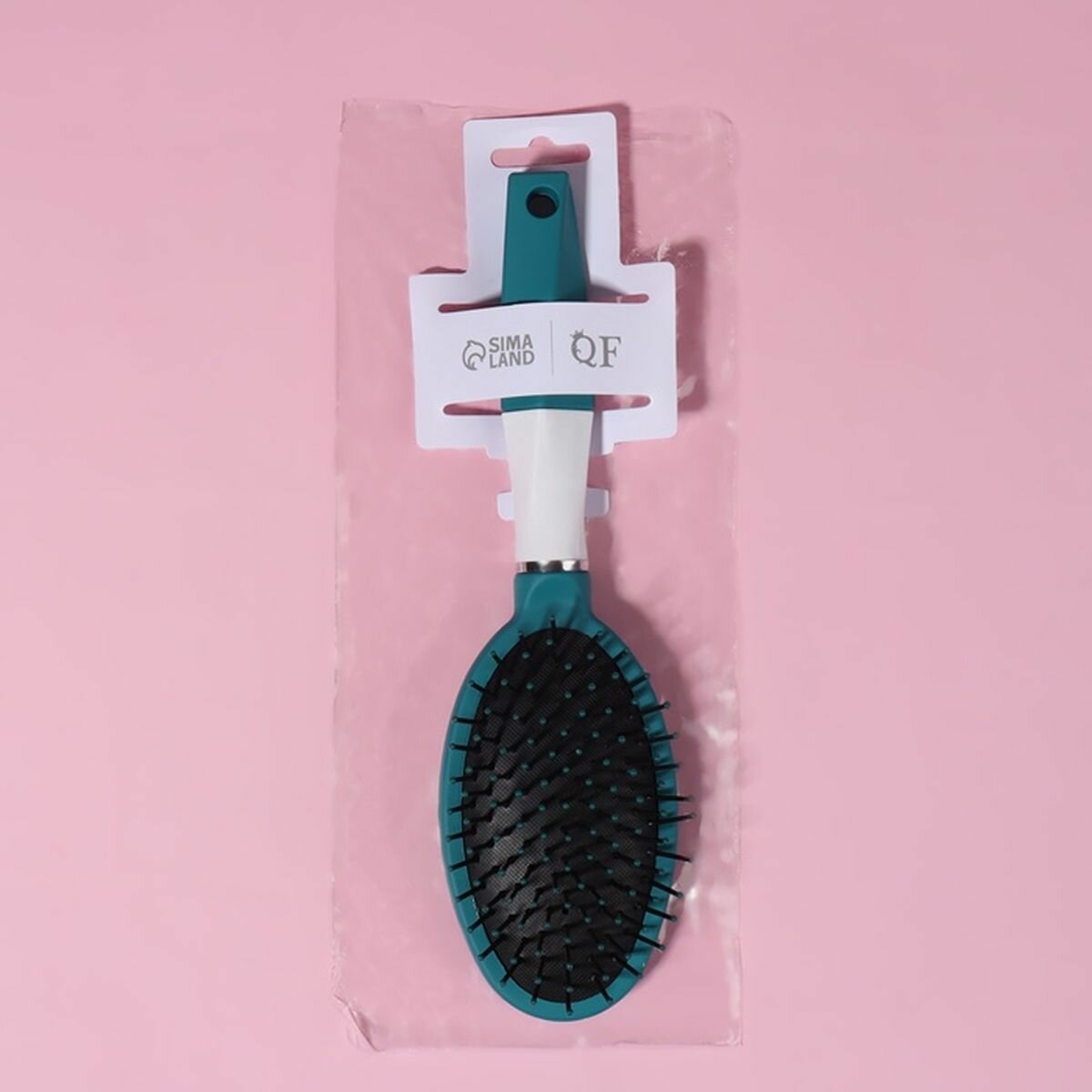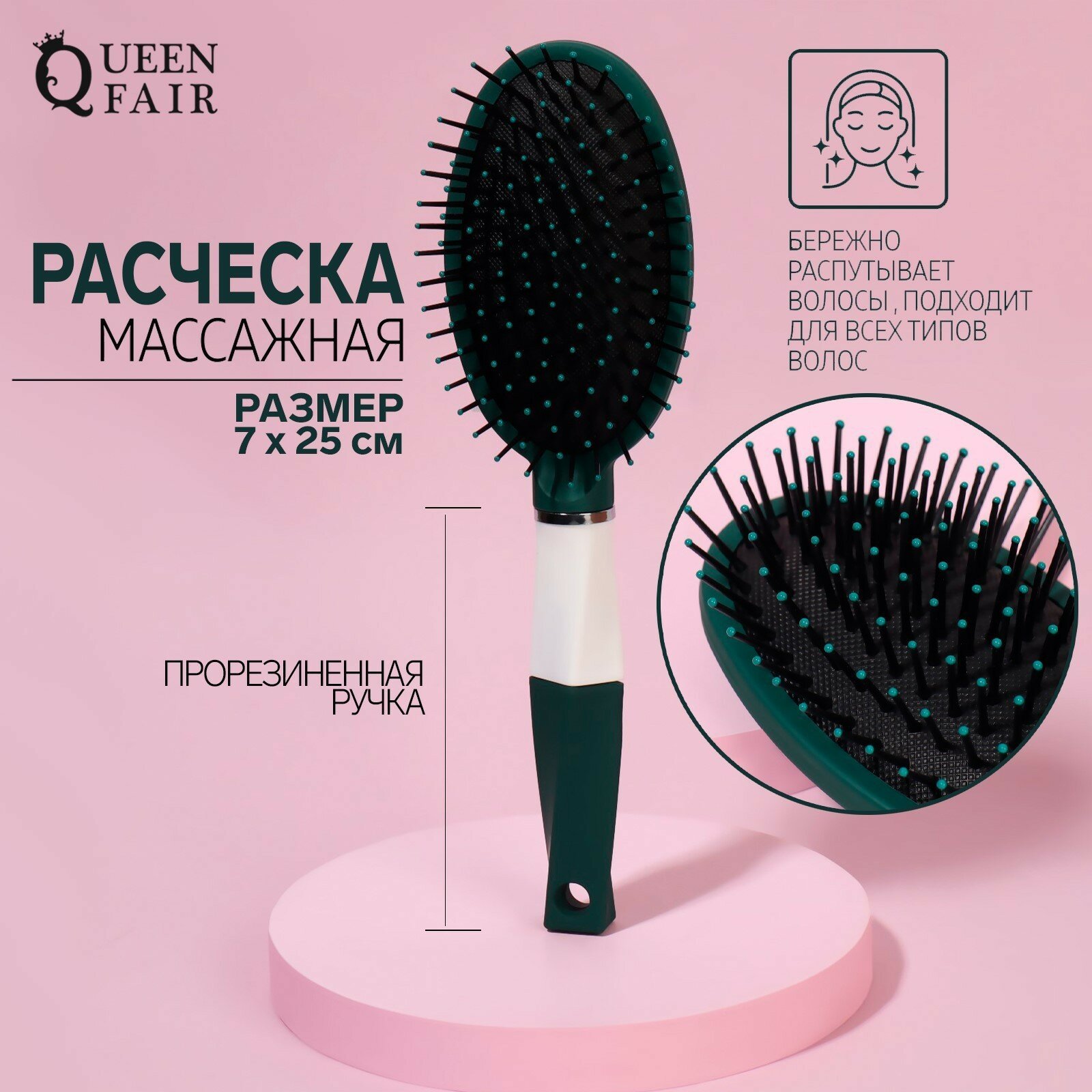 Queen fair Расчёска массажная, прорезиненная ручка, 7 × 25 см, цвет зелёный/белый