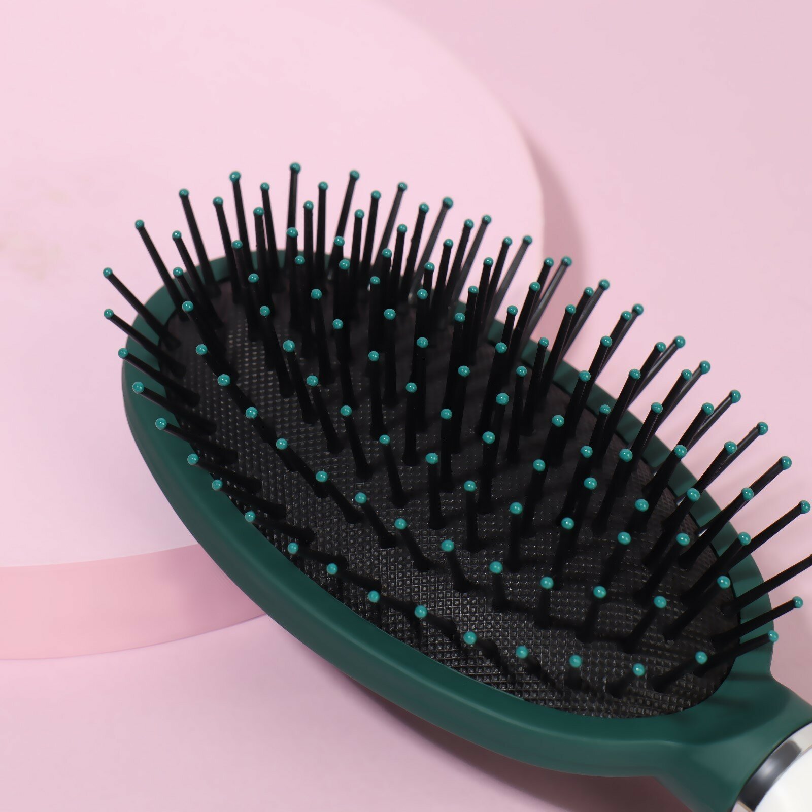 Расчёска массажная, прорезиненная ручка, 7 × 25 см, цвет зелёный/белый