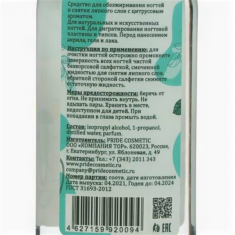 СохранитьСредство для обезжиривания ногтей и снятия липкого слоя Gel-Off спелый цитрус, 60 мл, Gel*off интересное: