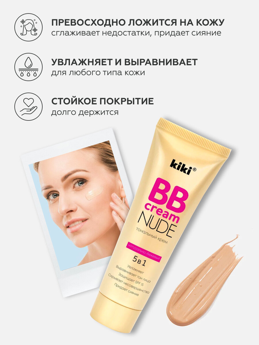 Kiki BB крем Nude 5 в 1, SPF 15, 40 мл, оттенок: тон 02 натуральный бежевый