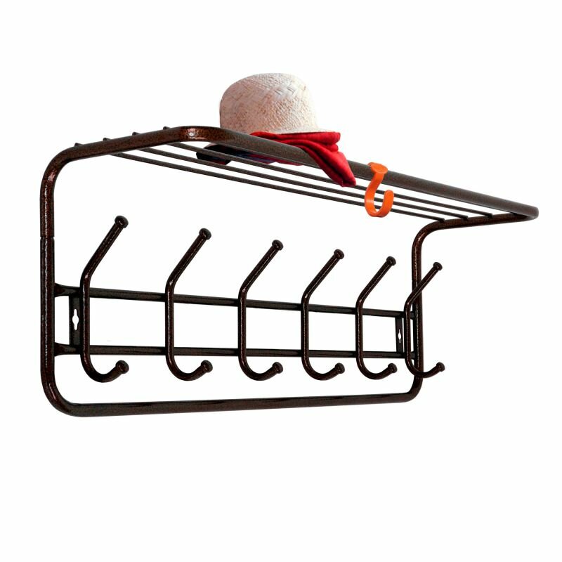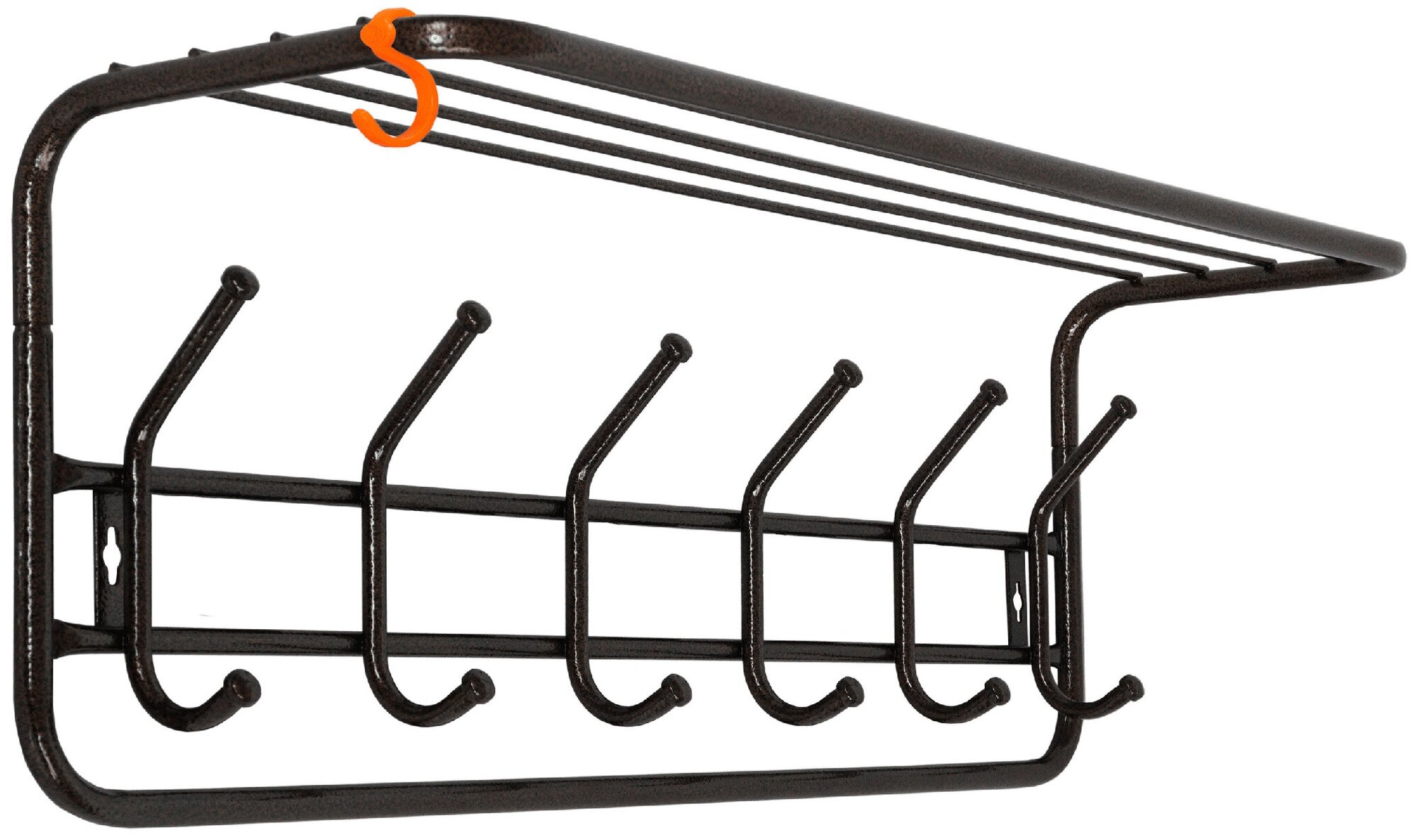 Вешалка настенная с полкой "ВСП7", 265х725х220 мм, 6 крючков, металл, черная, ВСП 7 Ч