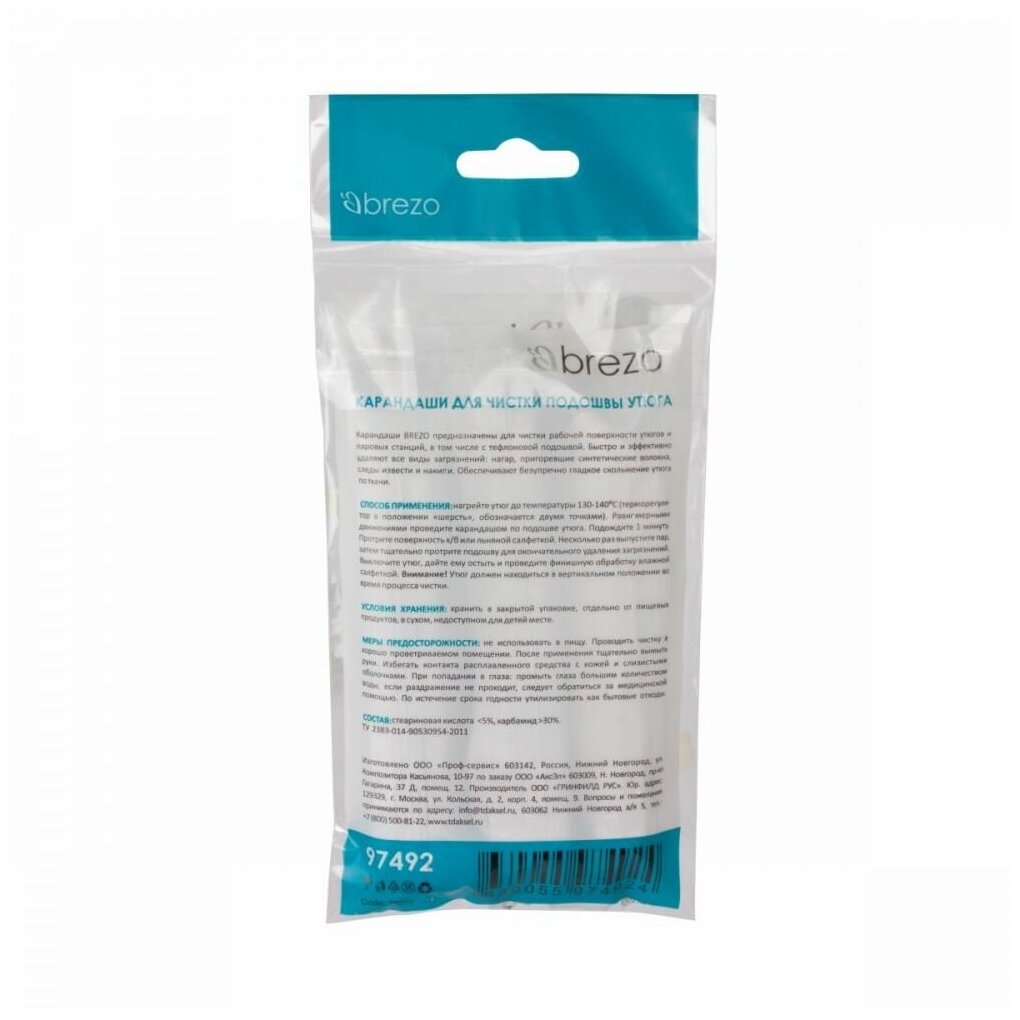 Набор карандашей для чистки подошвы утюга, 25 г., 3 шт., бренд: BREZO интересное: