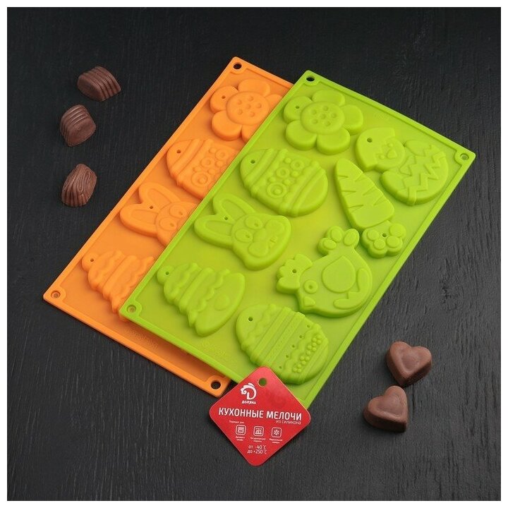 Доляна Форма силиконовая для шоколада Доляна «Животные», 30×17×1 см, 8 ячеек (7,7×6 см), цвет микс